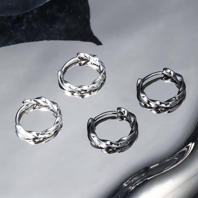 男性の魅力を引き立てる洗練されたねじりフープピアス