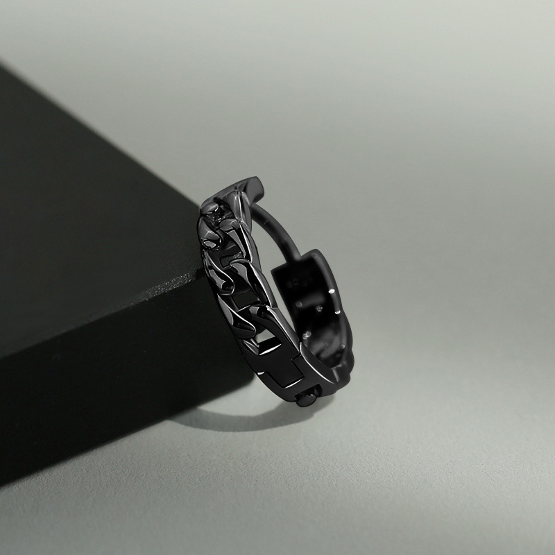 表面に施された鎖状のデザインが高級感と存在感を演出し、耳元に個性的なアクセントを添えます。