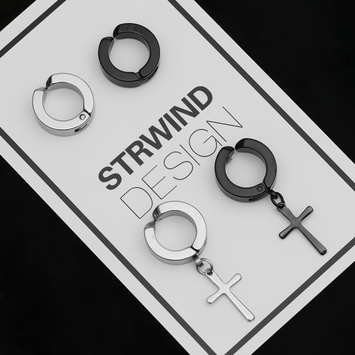 シンプルな輪っか型に十字架のチャームが揺れるメンズピアスです。 両耳セットで統一感のあるコーディネートが楽しめます。 留め具はワンタッチ式で着脱しやすく、日常使いにも最適です。 十字架モチーフが動くたびに存在感を放ち、さりげない個性を演出します。 カジュアルからモード系まで幅広いスタイルに合わせやすいデザインです。