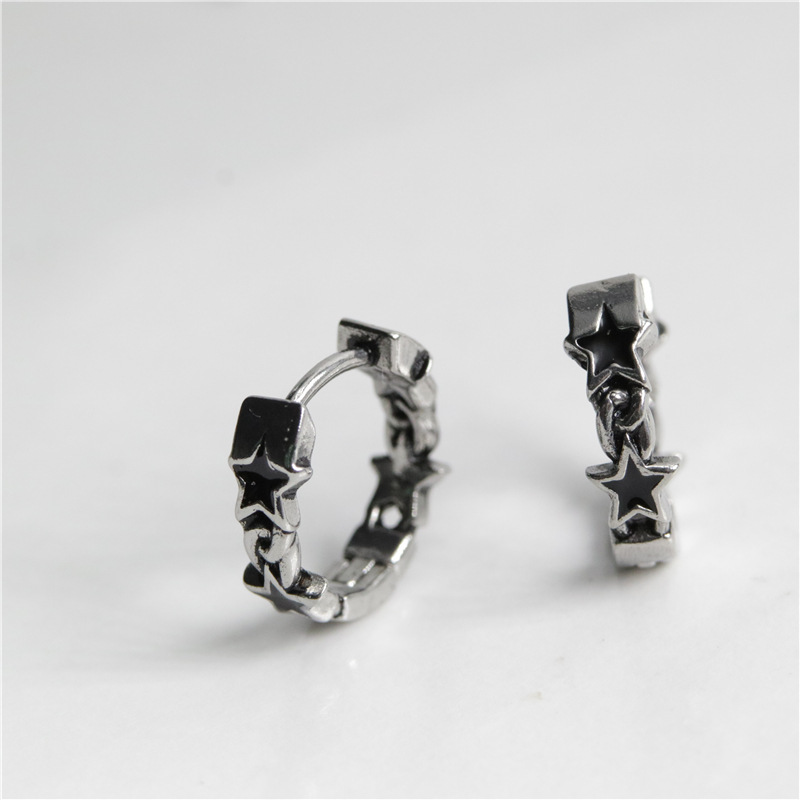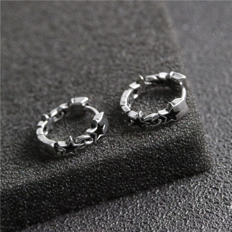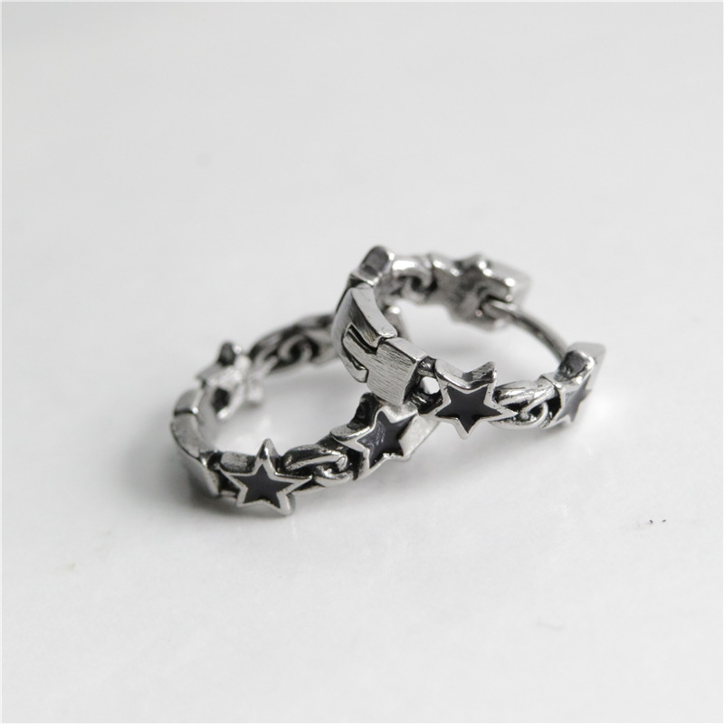 星のモチーフが連続して配置された個性的なデザインのメンズピアスです。