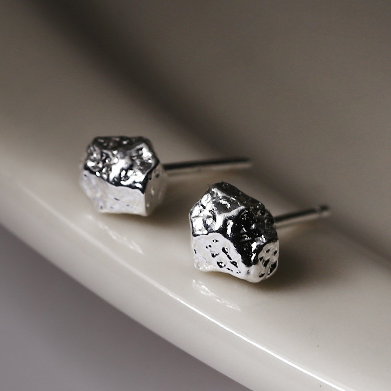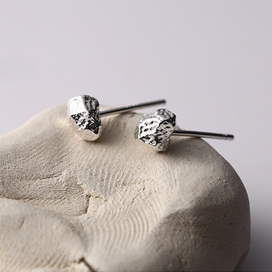 モードな雰囲気漂う不規則な天然石を使用したシルバーピアスです。