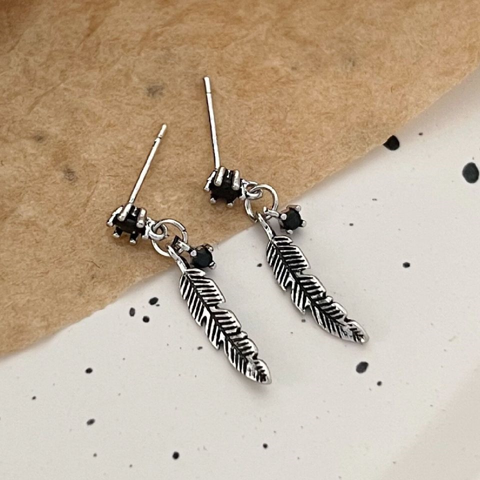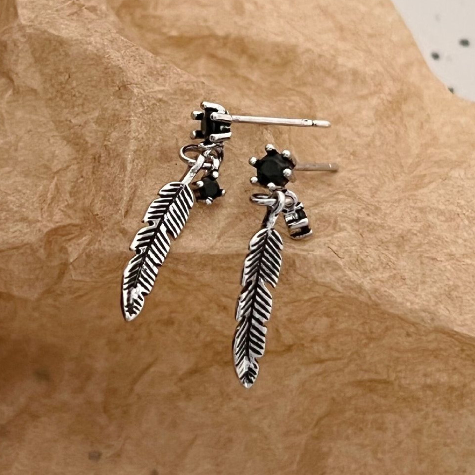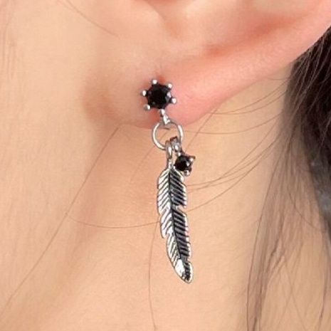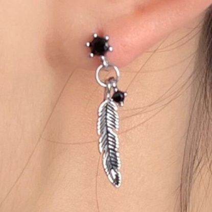 羽根デザインと黒石が印象的で、メンズピアスとして存在感抜群です。